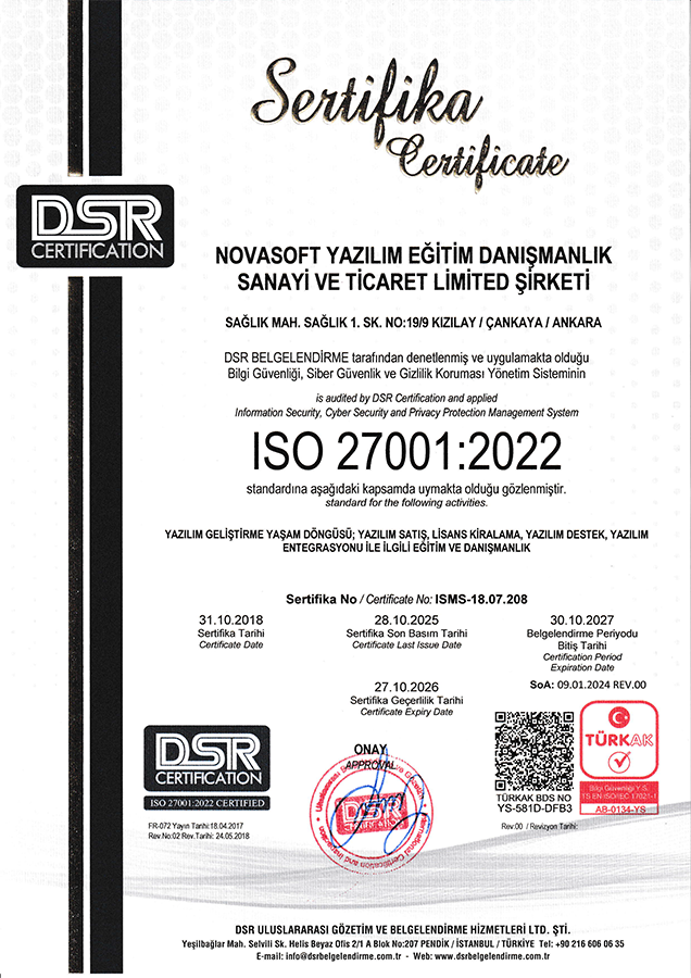 Novasoft Yazılım Eğitim Danışmanlık Sanayi ve Ticaret Limited Şirketi olarak olarak Kişisel Verilerin Korunması Kanunu'na uygun olarak kişisel verilerinizi iletişim süreçlerinin yönetilmesi amacıyla işlemekteyiz. Kanun kapsamındaki haklarınızı içeren Aydınlatma Metnimizi okuyabilirsiniz.